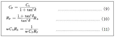 式(9)、(10)、(11)中:Cs、Rs、CP、RP、tanδ同式(7)、(8)。