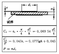 Cs——取去試樣后,恢復平衡,測微計電極間距為s時的標定電容Cor,Coh——測微計電極之間試樣所占據的,間距分別為r或h的空氣電容。可用表1中的公式1來計算r——試樣與所加電極的厚度