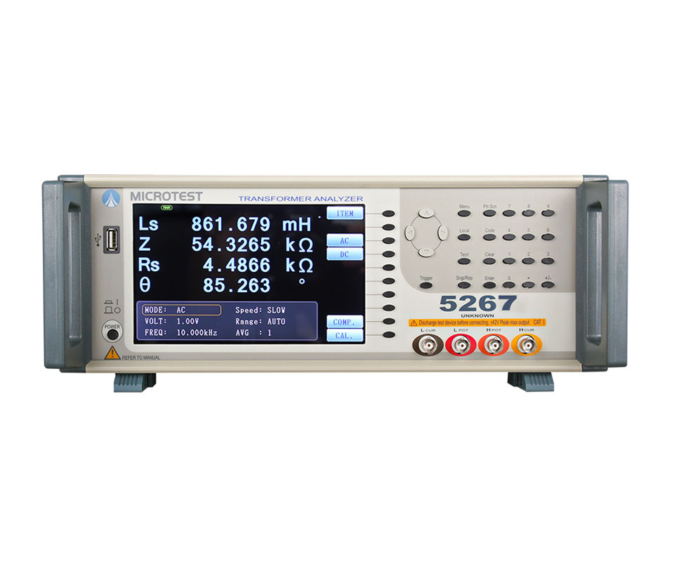 益和 5267 變壓器, 測試頻率為 10Hz-1MHz,測試點位為20點。基本精準度 ±0.1%,搭配F5620測試治具(含100mA直流偏置電流)。內建可儲存128組測試檔案。支援RS-232、Handler、LAN、USB Host等介面。適用于各種變壓器進料、檢驗、品保等檢測部門。