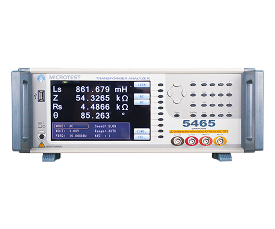 益和 5465 變壓器, 測試頻率為 10Hz-200kHz,測試點位為48 點。基本精準度 ±0.1%,搭配F5648測試治具(含100mA直流偏置電流)。內建可儲存128組測試檔案。支援RS-232、Handler、LAN、USB Host等介面。適用于各種變壓器進料、檢驗、品保等檢測部門。