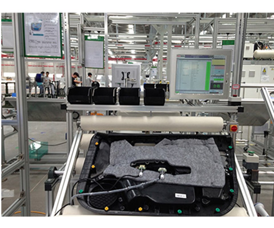 從上一個(gè)工位取一個(gè)門板,放到測(cè)試架上,掃描門板上的條碼,然后,放對(duì)應(yīng)安裝組件的框前指示燈會(huì)亮。接著操作員從對(duì)應(yīng)的框中取出相應(yīng)的組件,通過掃描組件上的條碼來確認(rèn)組件是否正確(在進(jìn)行規(guī)格設(shè)定的時(shí)候,都已經(jīng)將每個(gè)門板上對(duì)應(yīng)組件的條碼輸入進(jìn)去了),在掃描組件條碼確認(rèn)OK后,對(duì)應(yīng)的框前指示燈會(huì)熄滅。然后操作員將組件安裝到門板的指定位置,接上測(cè)試連接線。接著操作員按照固定的順序?qū)﹂T板的開關(guān)按鍵進(jìn)行一一測(cè)試。測(cè)試完成后所有數(shù)據(jù)會(huì)存儲(chǔ)。