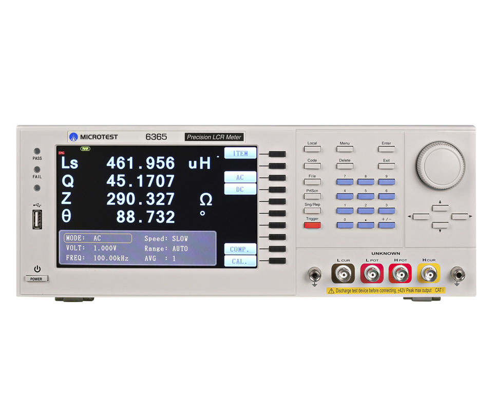 6363經濟型 LCR 電橋具備高精確度、速度,且經濟型多功能,測試頻率范圍從10Hz~20kHz?;揪_度±0.05%,螢幕畫面可以同時顯示四個參數。具多步列表功能,最多可以設定8組。低頻率6365A(0.1Hz~200kHz)可量測容量大的鋁電解電容。支援USB Host、RS-232、GPIB、Handler、LAN等介面??蛇x購電腦連線軟體進行圖形繪圖分析。適用于生產制造、品保或進料檢驗或自動化檢測部門。