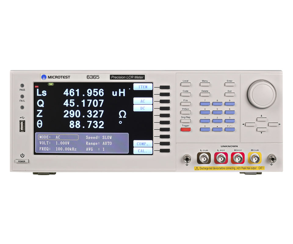 6364經(jīng)濟(jì)型 LCR 電橋具備高精確度、速度,且經(jīng)濟(jì)型多功能,測試頻率范圍從10Hz~100kHz。基本精確度±0.05%,螢?zāi)划嬅婵梢酝瑫r顯示四個參數(shù)。具多步列表功能,最多可以設(shè)定8組。低頻率6365A(0.1Hz~200kHz)可量測容量大的鋁電解電容。支援USB Host、RS-232、GPIB、Handler、LAN等介面。可選購電腦連線軟體進(jìn)行圖形繪圖分析。適用于生產(chǎn)制造、品保或進(jìn)料檢驗或自動化檢測部門。