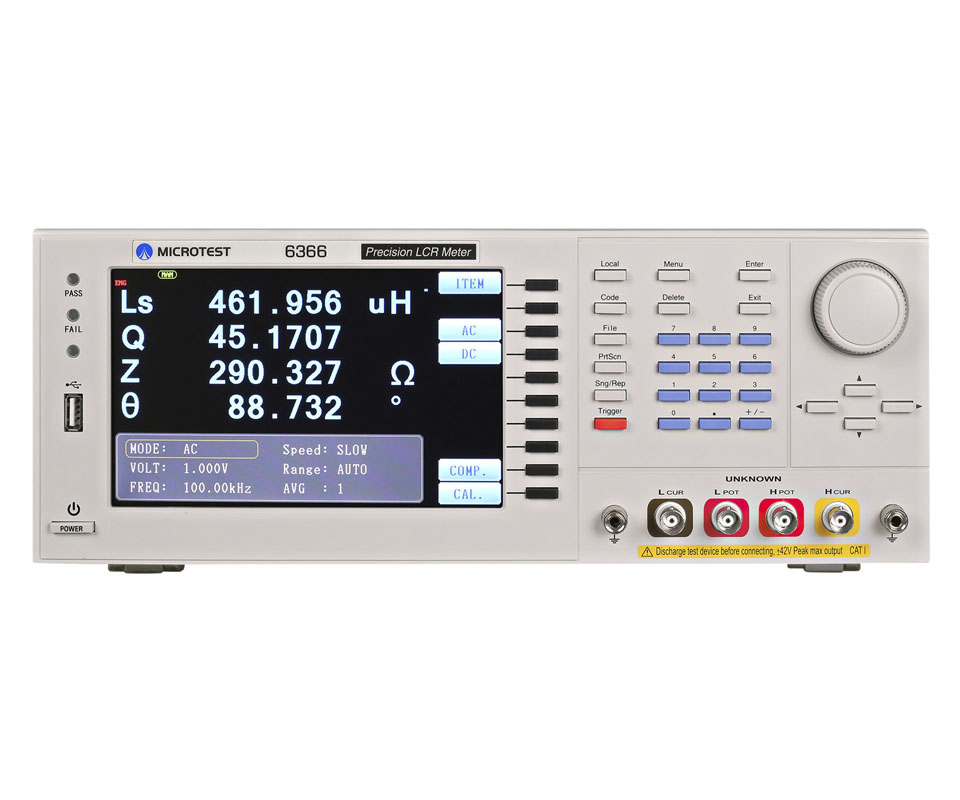 6366經(jīng)濟(jì)型 LCR 電橋具備高精確度、速度,且經(jīng)濟(jì)型多功能,測試頻率范圍從10Hz~500kHz。基本精確度±0.05%,螢?zāi)划嬅婵梢酝瑫r顯示四個參數(shù)。具多步列表功能,最多可以設(shè)定8組。低頻率6365A(0.1Hz~200kHz)可量測容量大的鋁電解電容。支援USB Host、RS-232、GPIB、Handler、LAN等介面。可選購電腦連線軟體進(jìn)行圖形繪圖分析。適用于生產(chǎn)制造、品保或進(jìn)料檢驗或自動化檢測部門。